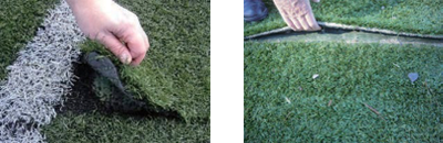對于草坪接縫處和接合處應(yīng)當(dāng)每周檢查一次,因為接縫處或接合處容易松動,導(dǎo)致運(yùn)動員絆倒,引起危險。如果長度超過 300mm,則應(yīng)當(dāng)通知場地鋪設(shè)商,以避免裂縫進(jìn)一步擴(kuò)大。