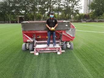 保證足夠的填充顆粒對于運(yùn)動員的安全以及保證場地的性能都是很重要的;填充物過低則導(dǎo)致人造草坪容易損壞和磨損;填充物過高,則會導(dǎo)致場地不平穩(wěn),運(yùn)動員腳底抓地力不平衡,易于引起嚴(yán)重身體損傷。填充顆??梢员WC人造草坪草絲處于垂直狀態(tài),以確保理想的球速,并降低草坪灼燒的可能性。對于填充顆粒的填充水平,應(yīng)當(dāng)咨詢場地鋪設(shè)商。