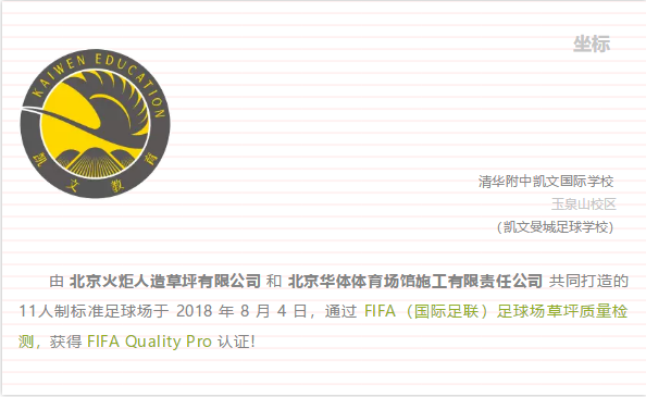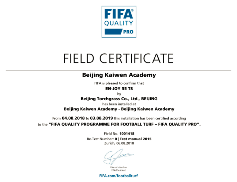 FIFA Quality Pro 是 FIFA國際足聯(lián) 認(rèn)證標(biāo)準(zhǔn)足球場(chǎng)。獲得FIFA Quality Pro認(rèn)證的證書場(chǎng)地?fù)碛谐薪覨IFA級(jí)別賽事的資格。