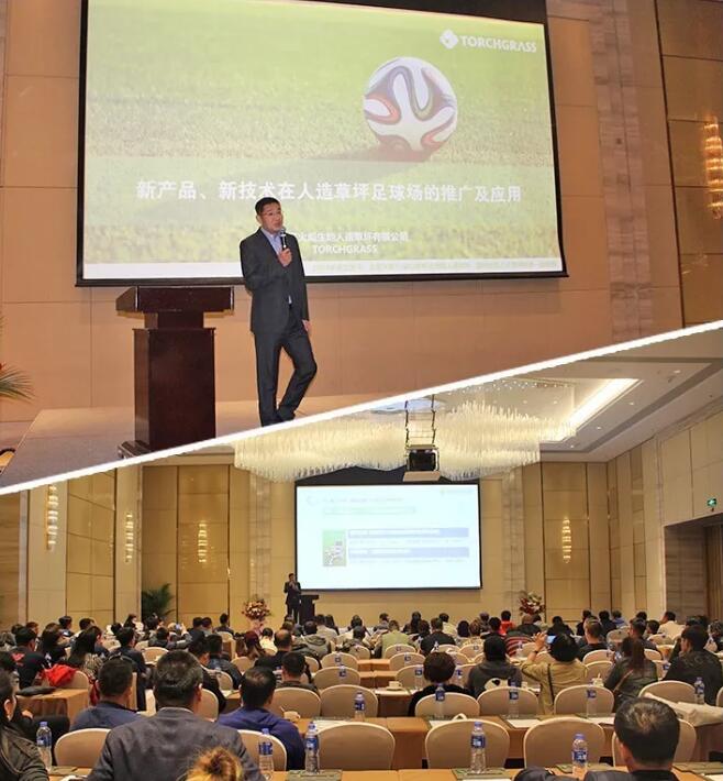 會議中,北京火炬董事長楊毅良先生,以運(yùn)動場應(yīng)用案例及產(chǎn)品優(yōu)勢進(jìn)行了全面分享,并現(xiàn)場展示了北京火炬十?dāng)?shù)年來,對不同區(qū)域、不同環(huán)境下所建設(shè)的運(yùn)動場地同比當(dāng)?shù)匦袠I(yè)其他建設(shè)場地的持久性跟蹤調(diào)研數(shù)據(jù),其鏗鏘有力的展示了火炬草卓越的品質(zhì),贏得全會場嘉賓的贊嘆有加,最后更是以新產(chǎn)品的較強(qiáng)耐磨性能和降溫性能贏得會場熱烈掌聲。