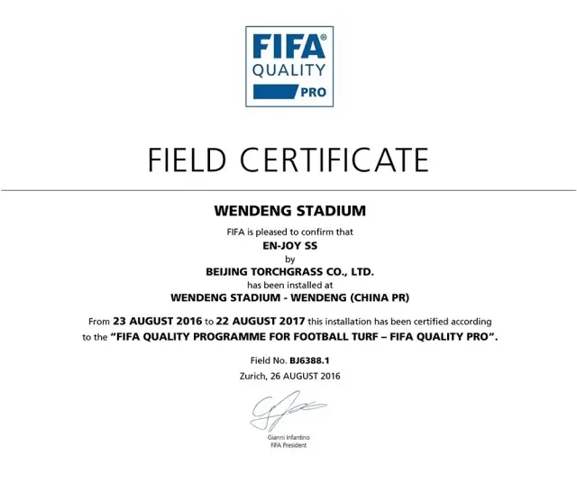 北京火炬一直致力于打造品質(zhì)卓越的人造草坪品牌,勵志為更多的足球運(yùn)動愛好者,提供真正運(yùn)動性能良好的人造草坪足球場地。截止到目前為止,北京火炬已鋪設(shè)多塊FIFA認(rèn)證場地。