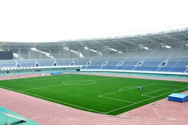 本次文登體育中心足球場地翻新修葺工程,由合作伙伴山東東海塑膠有限公司承接,東海塑膠公司選用來自北京火炬生產(chǎn)的優(yōu)質(zhì)運(yùn)動系人造草坪產(chǎn)品,加以嚴(yán)謹(jǐn)?shù)氖┕すに?,并?yán)格按照國際足聯(lián)(FIFA)場地系統(tǒng)標(biāo)準(zhǔn)施工鋪設(shè)完成。